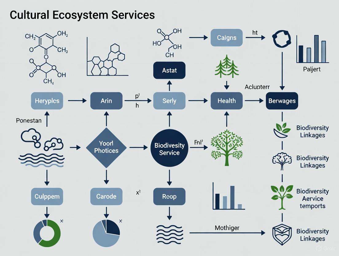 This article explores the critical, yet underexplored, linkages between cultural ecosystem services (CES) and biodiversity, framing them as a vital resource for researchers, scientists, and drug development professionals.